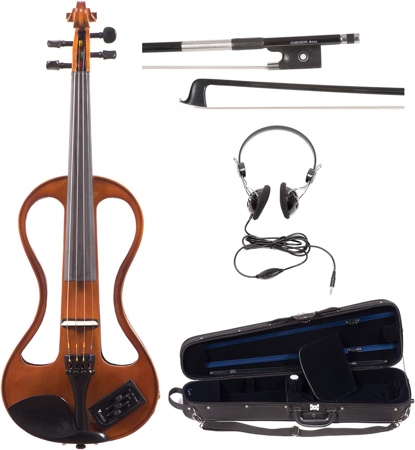 Amazon Com Johnson Ev 4s Companion Natural Electric Violin Outfit With Carbon Bow Case Musical Instruments